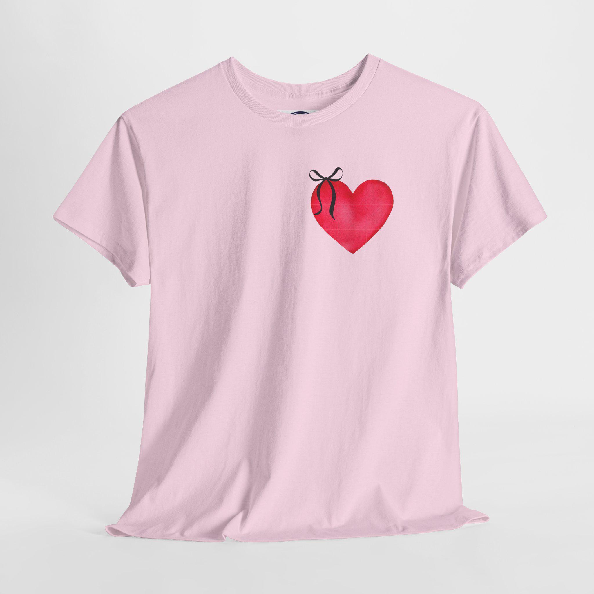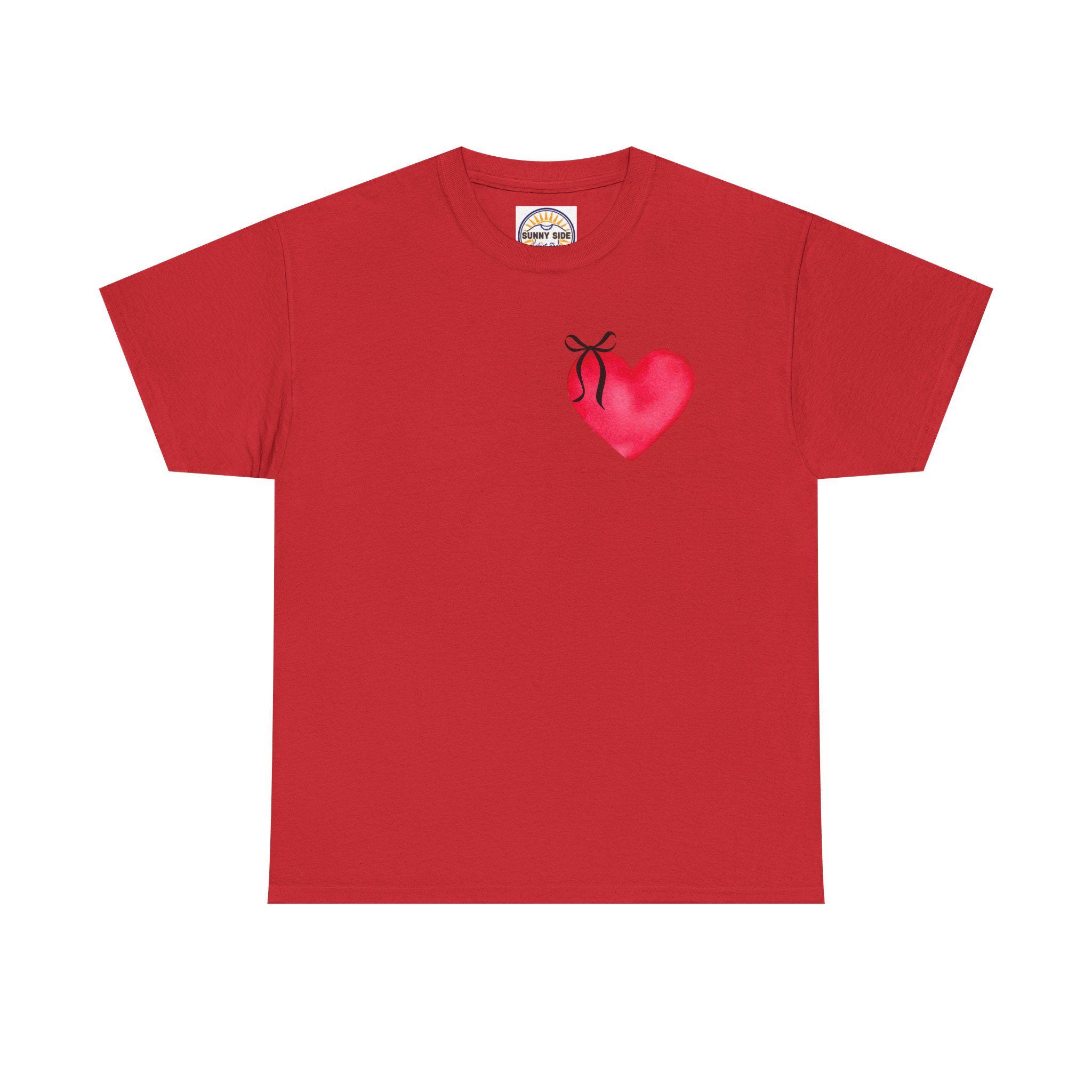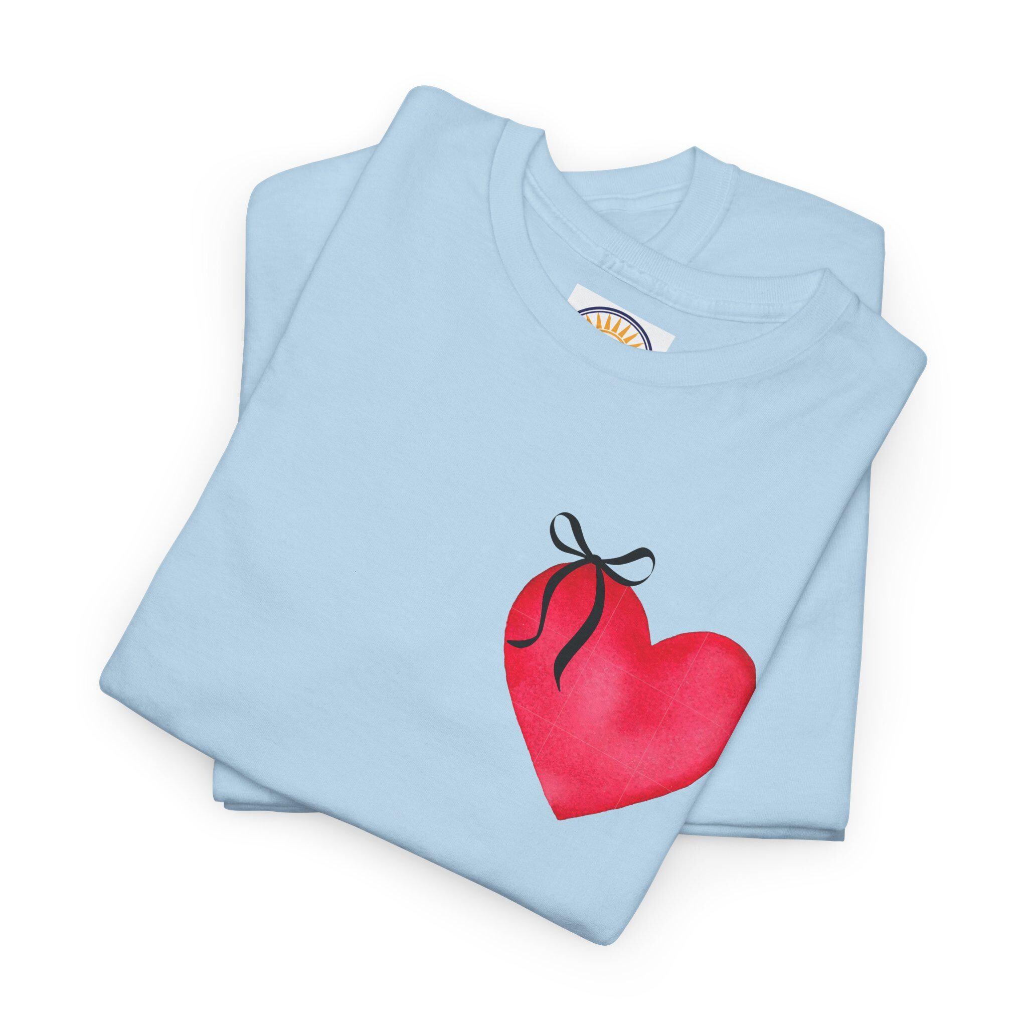 Red Heart with Ribbon Tee | Small Chest Graphic, Romantic Valentine Shirt